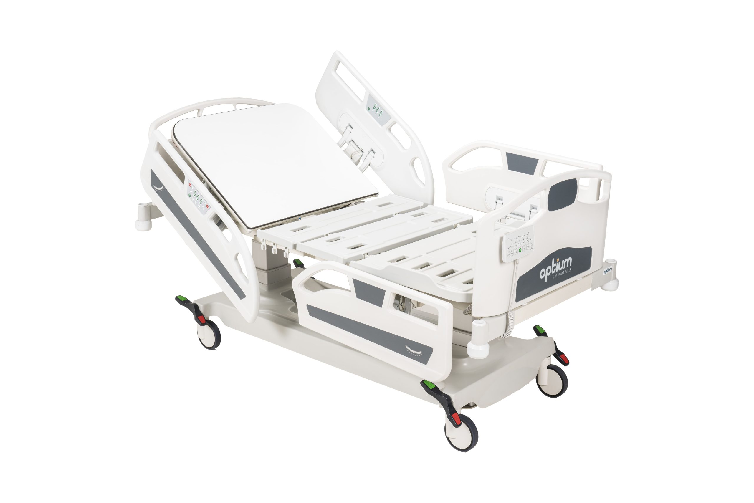 - Hygienic design (PP), lockable and tuck away side rails