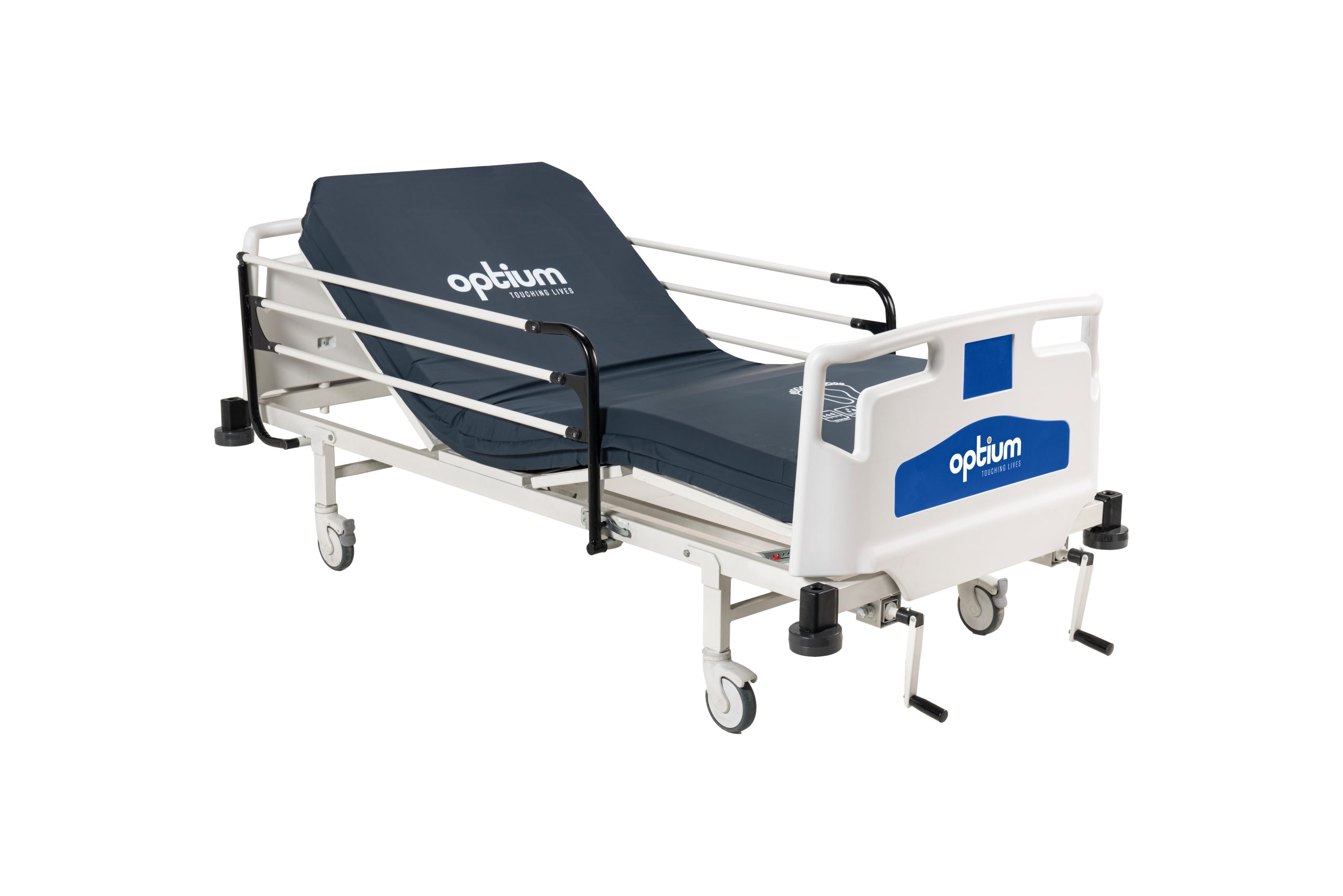 - Hygienic design (PP), lockable and tuck away side rails